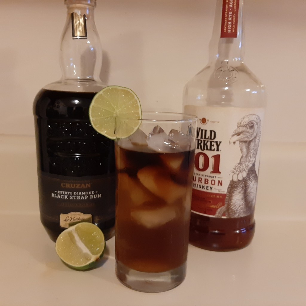 Directions: Fill highball glass with ice. Add rum and whiskey. Fill remainder of glass with buffalo rock (or other spicey giner ale, if you can’t get it). Add juice from 1 lime wedge and stir. Garnish with additional lime wedge.